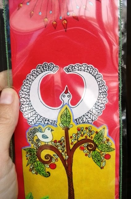 I started making these drawings as supplies for scrap-booking but couldn’t help myself and I used them! It’s pieced together like a puzzle, or a collage. I felt like drawing suns and moons and a tree.