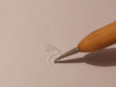I traced a design on it using the same tool I use for embossing, come to think of it I call it a burin sometimes, and began cutting.